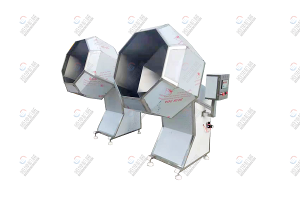 八角调味机设计为八角造型,避免了圆球调味机原料不滚动的弊端,充分搅拌原料调味均匀,并且调味机筒内没有死角、卫生清理更加方便,可以扳倒出料,使用方便。滚筒式拌料机是将各种原料、物料上下翻滚搅拌,达到完全混合的效果,短时间内将大量原料均匀的混合完毕。用于食品后期调味粉的搅拌或原料的裹粉包衣,结构简单实用,易清洗消毒。筒体为不锈钢圆筒设计,正转拌料,均匀不留死角,反转出料,自动把原料送到筒外。入料口设有入料斗,方便进料。不锈钢搅拌机属正转搅拌、反转出料。可搅拌种子、食品原料、八宝粥。本机有运转平稳,操作方便,搅拌质量好、生产率高等优点,此设备适用于各种膨化食品,如薯条、薯片、豆制品等上味的机器,该调味机在膨化食品调味中占有不可或缺的作用。广泛应用于医药、食品、化学品、饲料、陶瓷、耐火材料、化工、复合肥、染料、颜料、橡胶、建材、耐火材料、稀土、塑料玻璃以及新材料的物料混合搅拌,固定搅拌时,可挖地坑,使料斗口与地面平齐,进料方便,大大减轻劳动强度。本机结构新颖,具有生产效率高,搅拌质量好、重量轻、造型美观等优点。 参数: