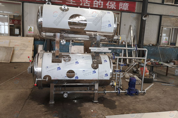 1、 热水循环式杀菌:杀菌时锅内食品全部被热水浸泡,这种方式热分布比较均匀